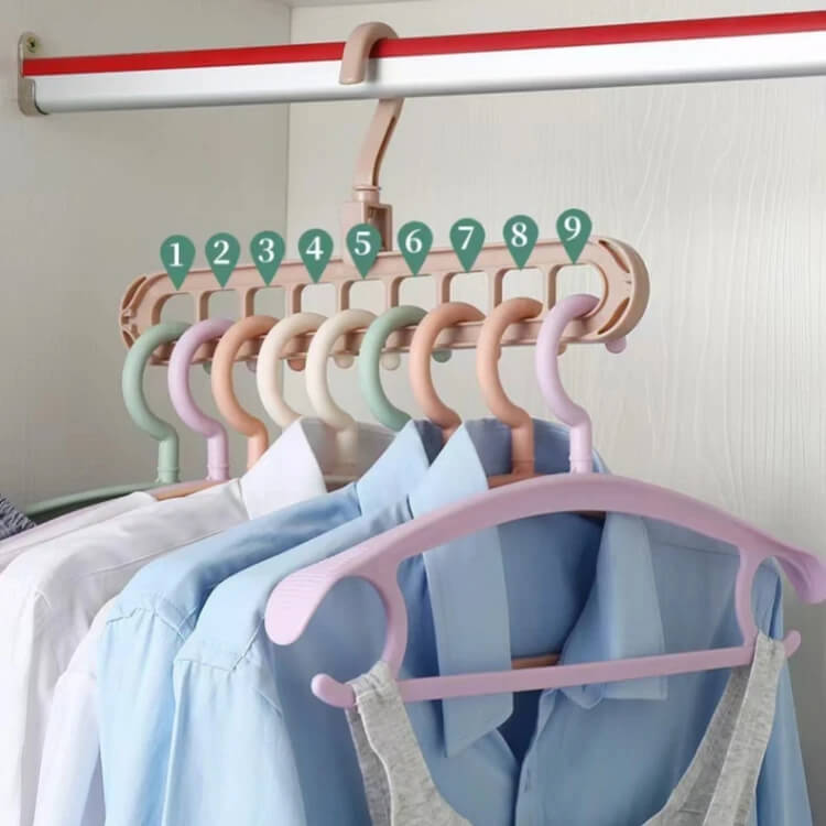 Grâce à ses 9 emplacements, ce cintre ingénieux te permet de suspendre plusieurs vêtements sur une seule barre. Que tu sois en studio, colocation ou juste accro au shopping, tu économises jusqu’à 80 % d’espace dans ton placard. Fini les vêtements froissés ou entassés : tout est visible, net et bien rangé. 👚🧥